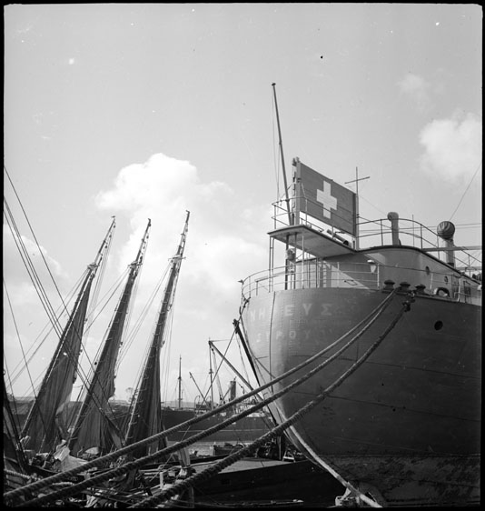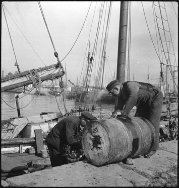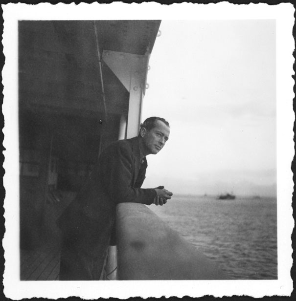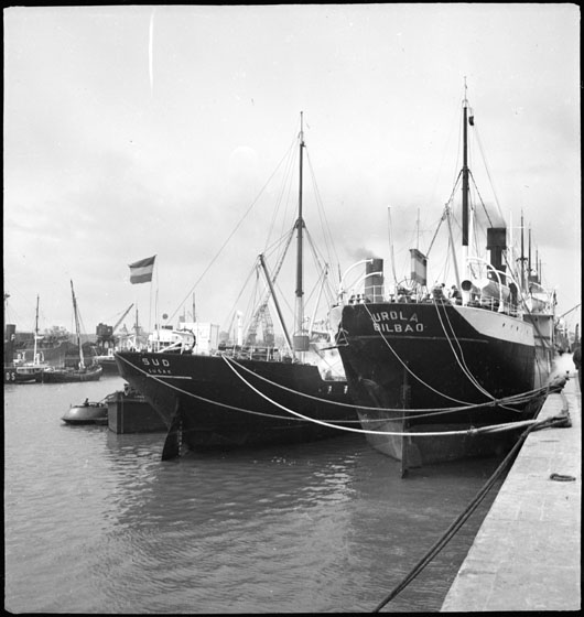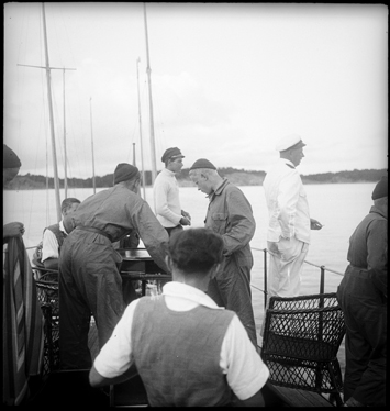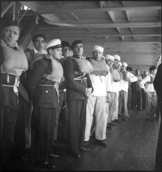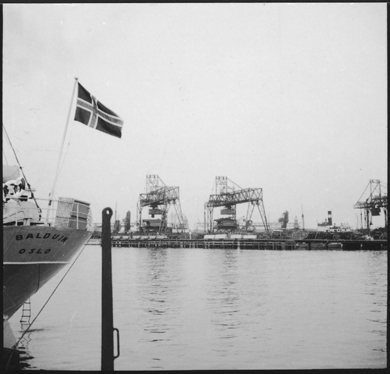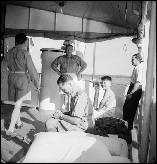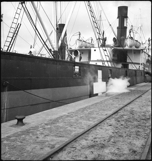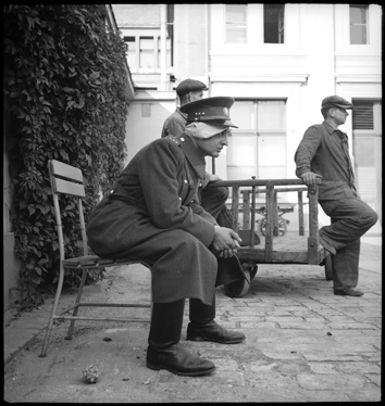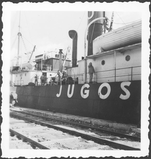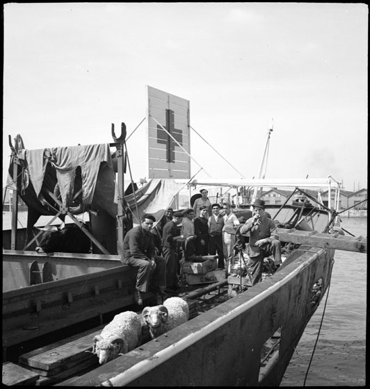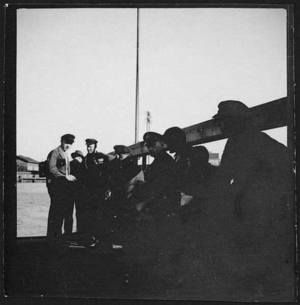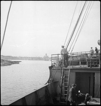 ![]() Tagwacht auf der Kapitänsbrücke, wo 3 belg. Offiziere, der Kapitän, sein 12 j. Sohn Guy, u. ich "wohnen" [handschriftlicher Eintrag auf Karteikarte] |