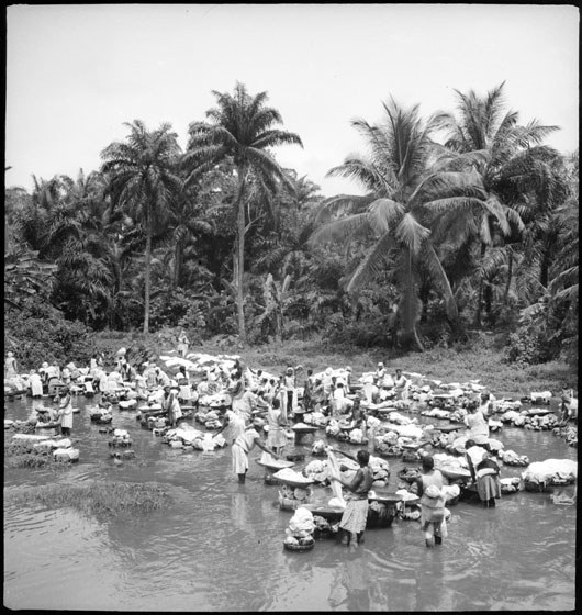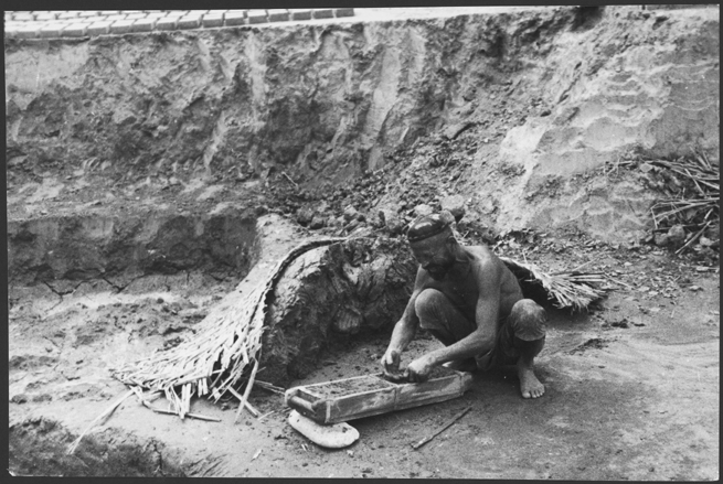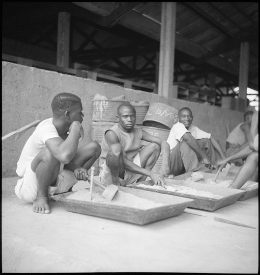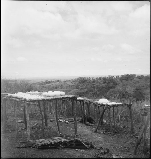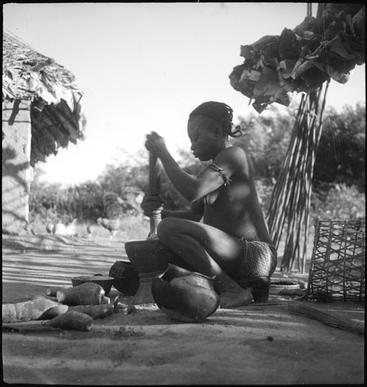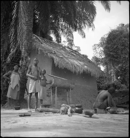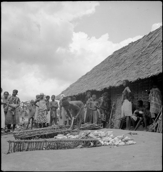 ![]() Thysville, Bas Congo [Wörter unterstrichen] Auf 800 m. Trocknen von gewässertem Maniok Neg. [handschriftlicher Eintrag auf separatem Umschlag] |