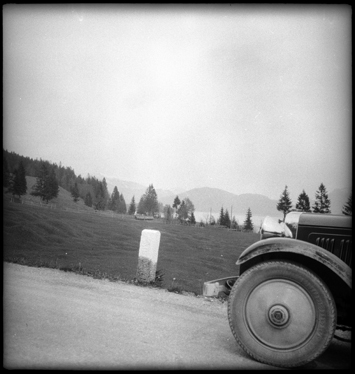 ![]() 4 [Zahl unterstrichen] Es hilft nichts - die Räder müssen abmontiert, der Wagen auf ein Schiebewägelchen gehoben werden, [handschriftlicher Eintrag auf Rückseite der Fotografie] |