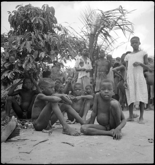 ![]() Halb nackte u. europäisch gekleidete Schwarze leben mit einander im Village Indigène in Leopoldville, der Kapitale des Belgischen Kongo... [handschriftlicher Eintrag auf Rückseite der Fotografie] |