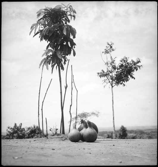 ![]() Thysville, Bas Congo [Wörter unterstrichen] Palmen u. Kalebassen (Trinkgefässe aus Kürbis) Neg. [handschriftlicher Eintrag auf separatem Umschlag] |